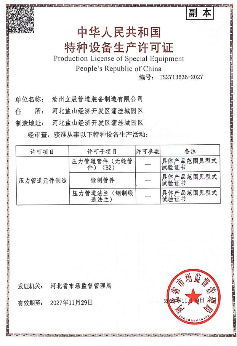 滄州立辰管道裝備制造有限公司是一家制造、銷售為一體的加工企業(yè),公司已通過(guò)特